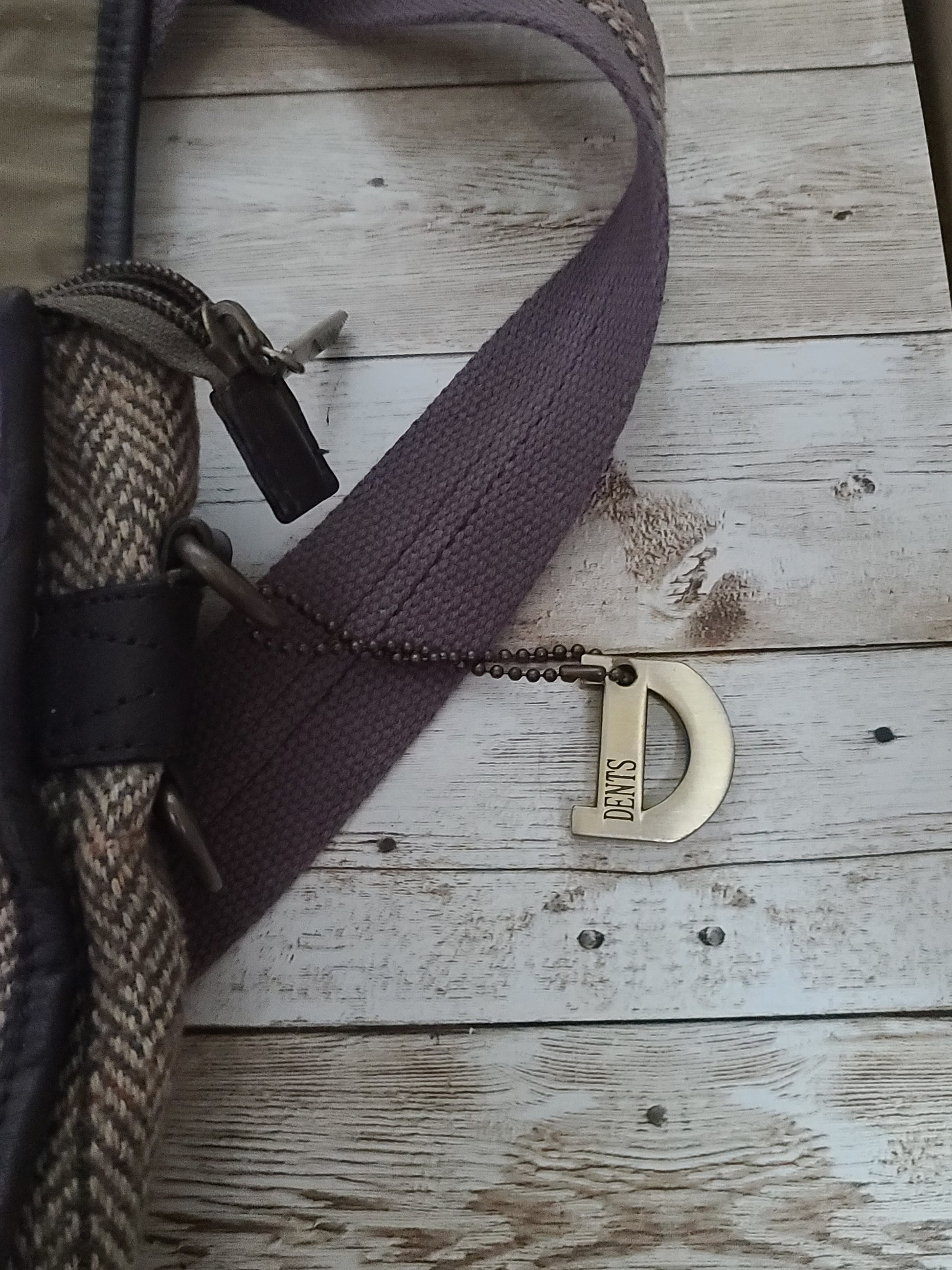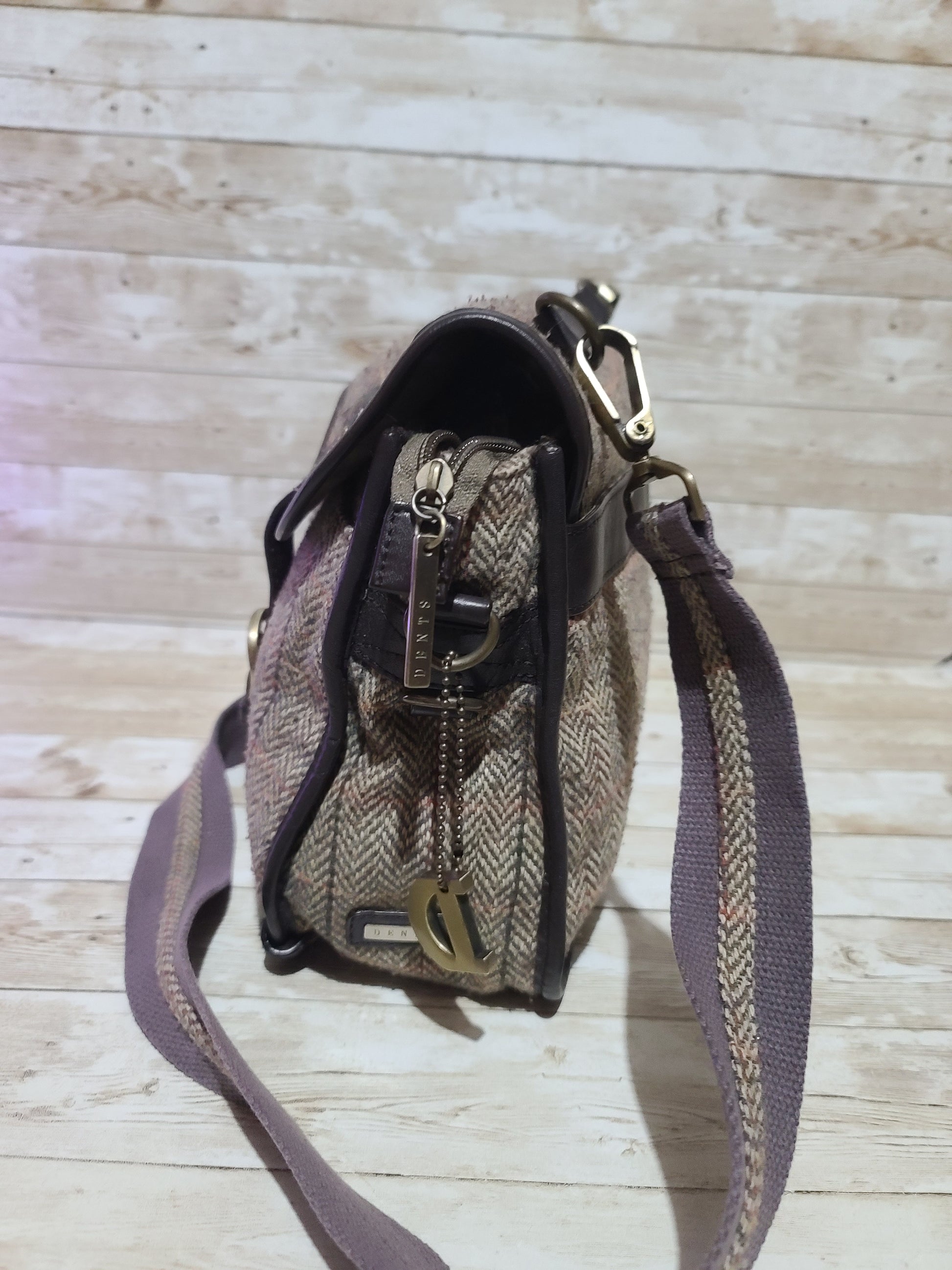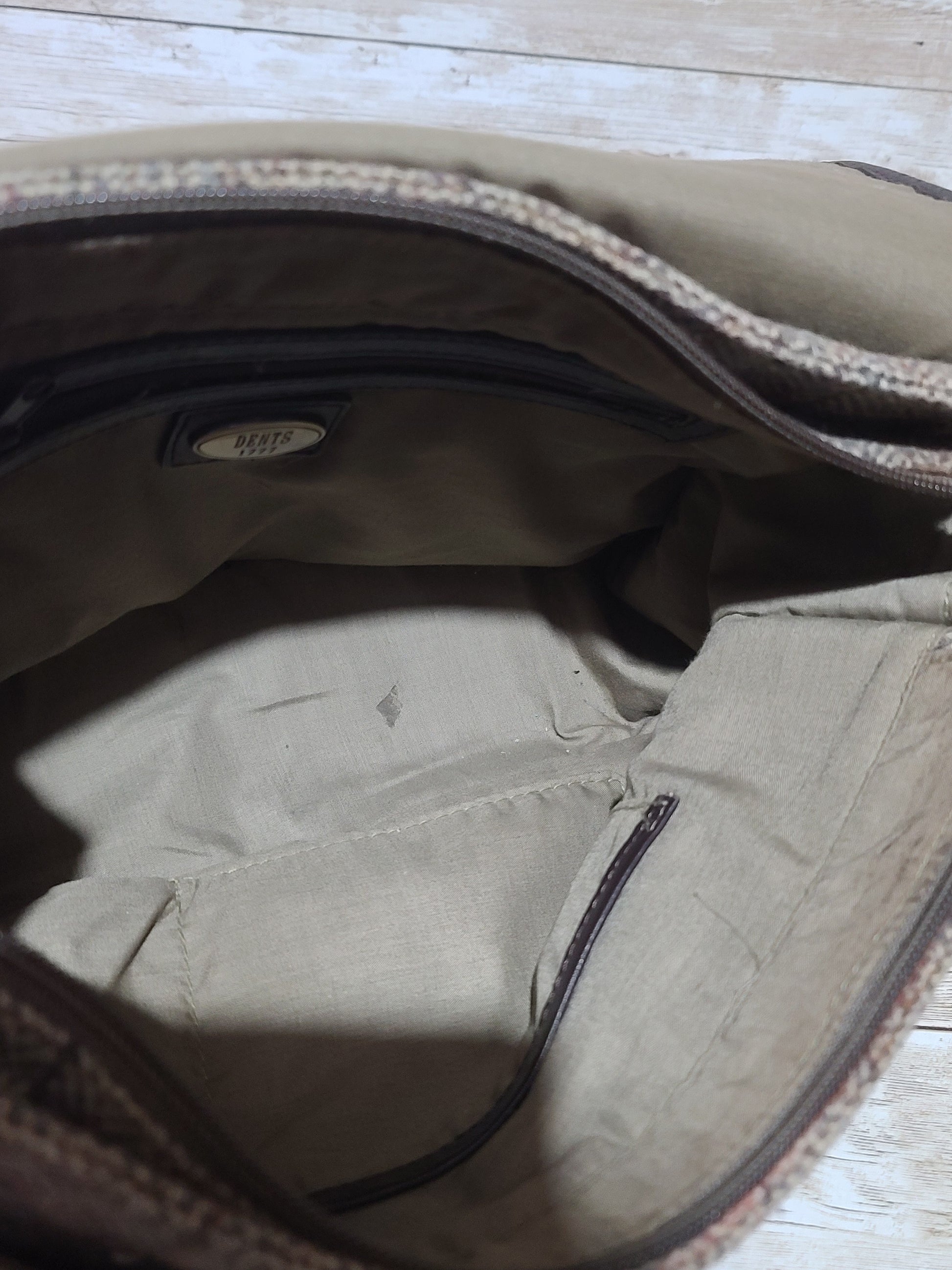 Dents Tweed & Leather Satchel Bag Brown Herringbone Crossbody Heritage 32cm Preloved
