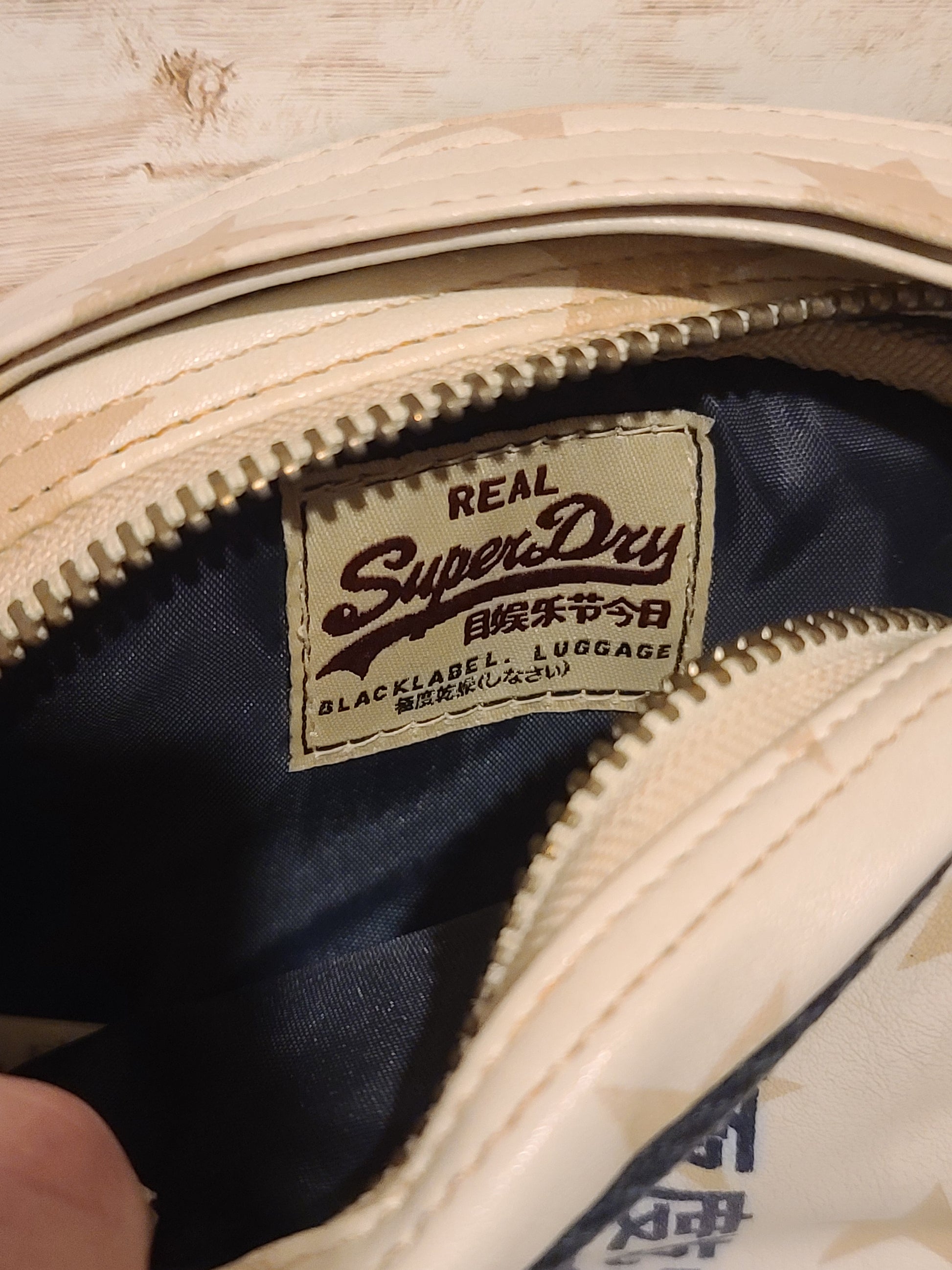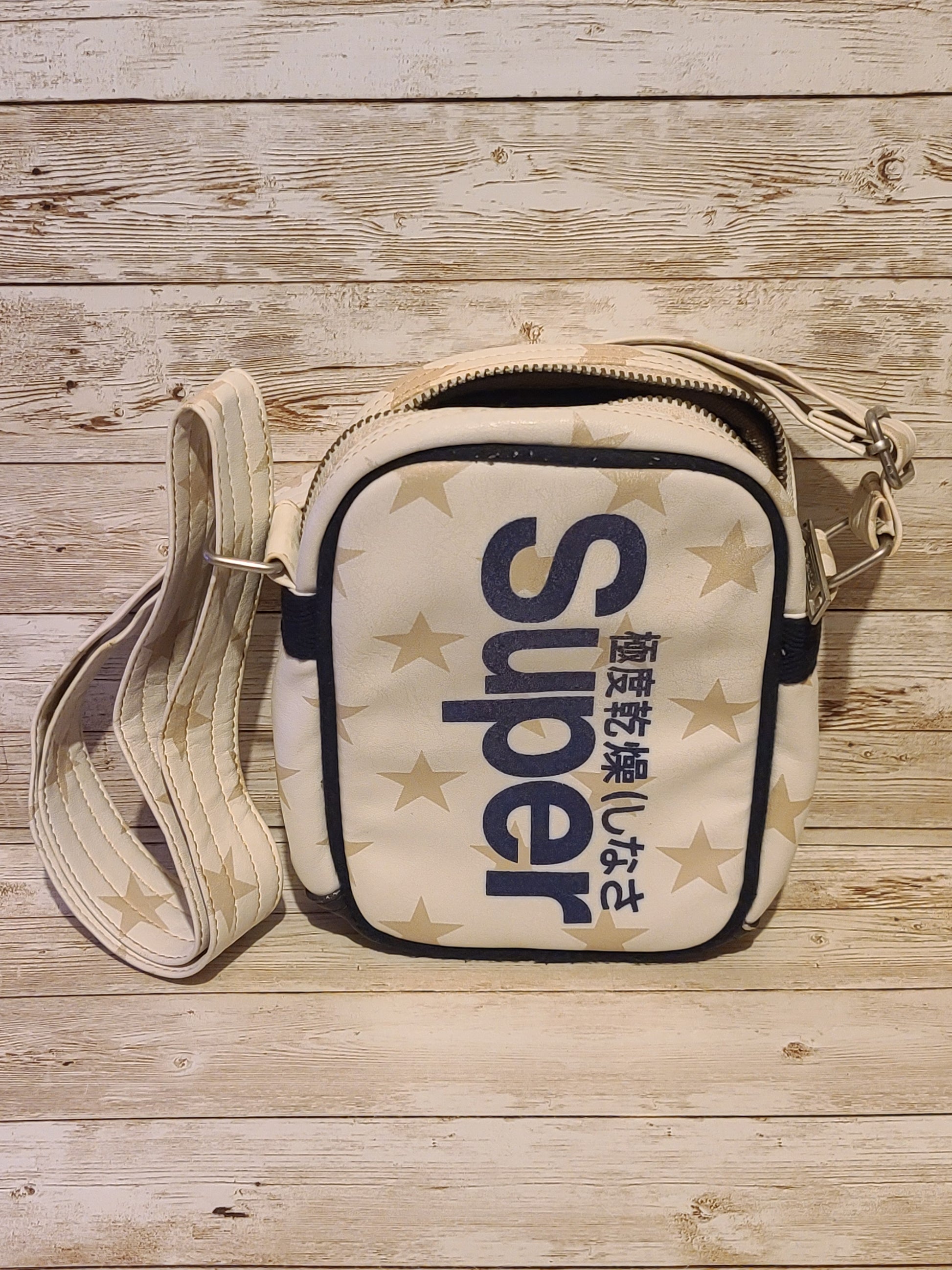 Vintage Superdry Cream/Beige Side Bag/ Crossbody Bag Gold Stars & Glittered Logo